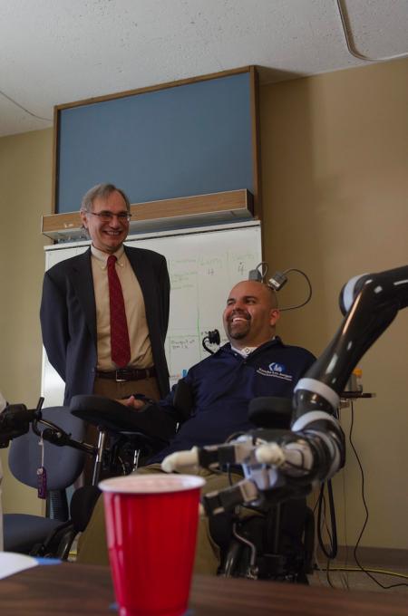 "This study has been very meaningful to me. As much as the project needed me, I needed the project. The project has made a huge difference in my life. It gives me great pleasure to be part of the solution for improving paralyzed patients' lives," Sorto says. "I joke around with the guys that I want to be able to drink my own beer—to be able to take a drink at my own pace, when I want to take a sip out of my beer and to not have to ask somebody to give it to me. I really miss that independence. I think that if it was safe enough, I would really enjoy grooming myself—shaving, brushing my own teeth. That would be fantastic."